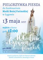 W 100 rocznicę objawień Matki Bożej Fatimskiej, 13 maja 2017 o godz. 11:00, wyruszyła pielgrzymka piesza do Sanktuarium Matki Bożej Fatimskiej w Łęgiwie.